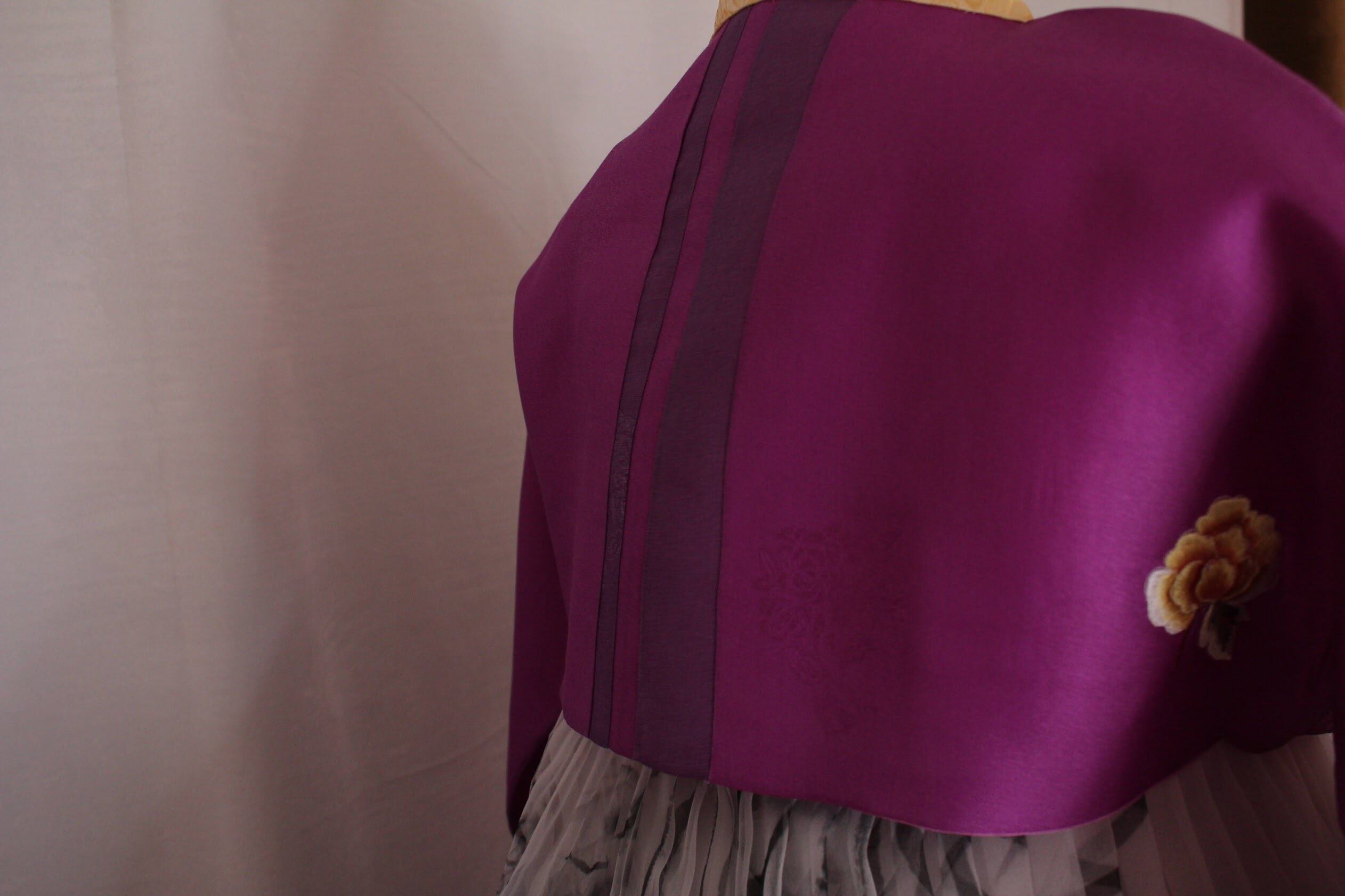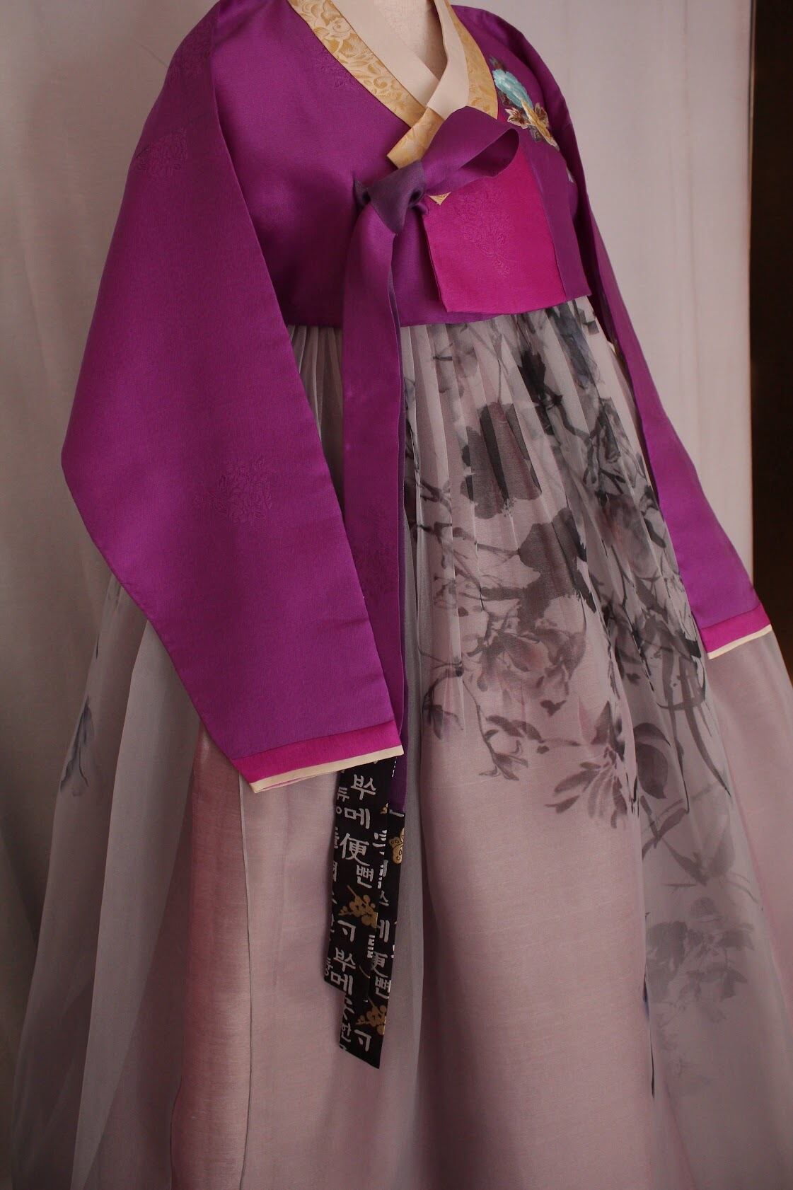仕様:胸元に牡丹の刺繡あり。コルム先に訓民正音デザインの生地。
